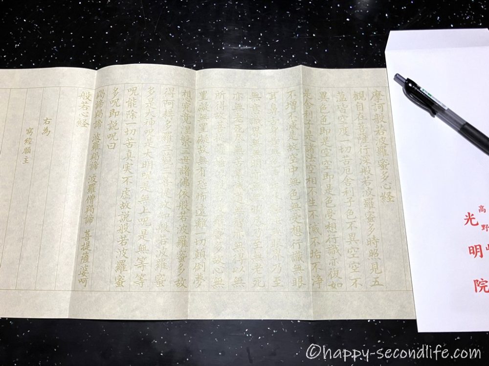 一般の旅館とちがい、写経のセットと護摩木(ごまぎ)が部屋に準備されていました。