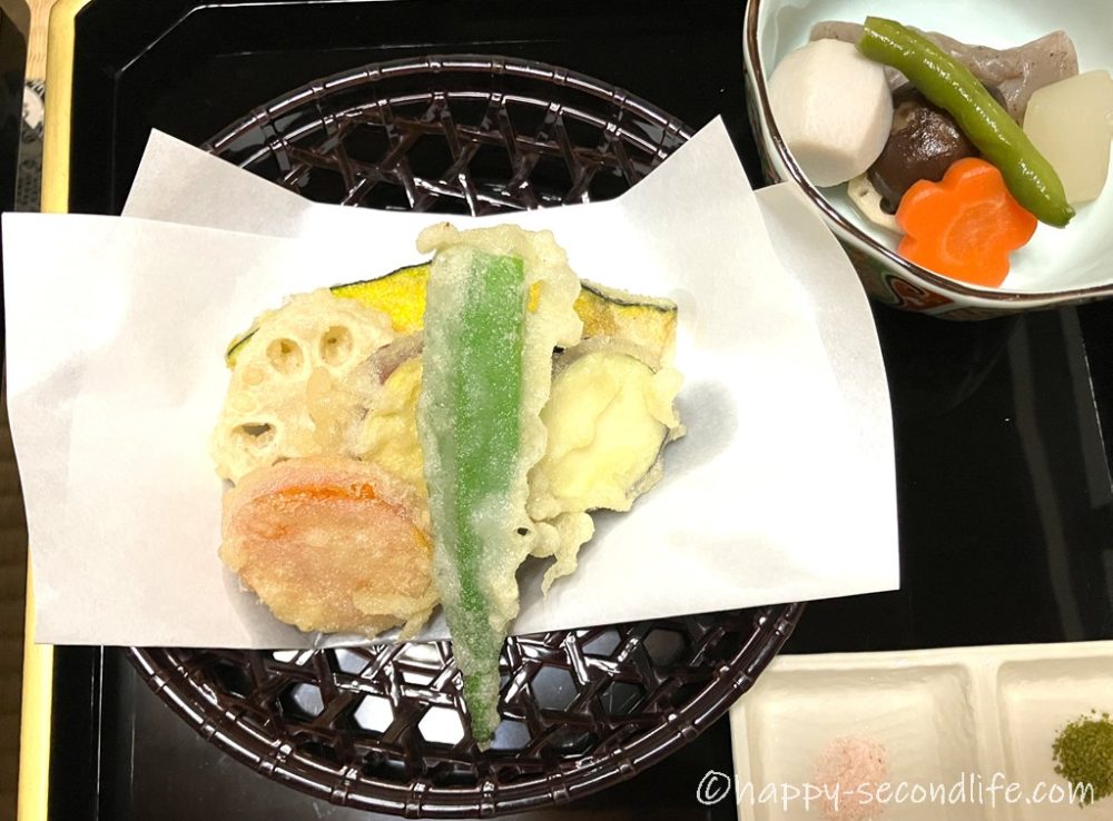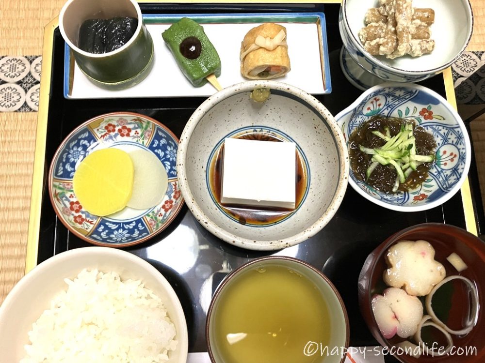 この他にお代わり自由のご飯のおひつとお茶のセットがありました。精進料理の夕食は好みがあると思いますが、私はとてもおいしくいただきました。