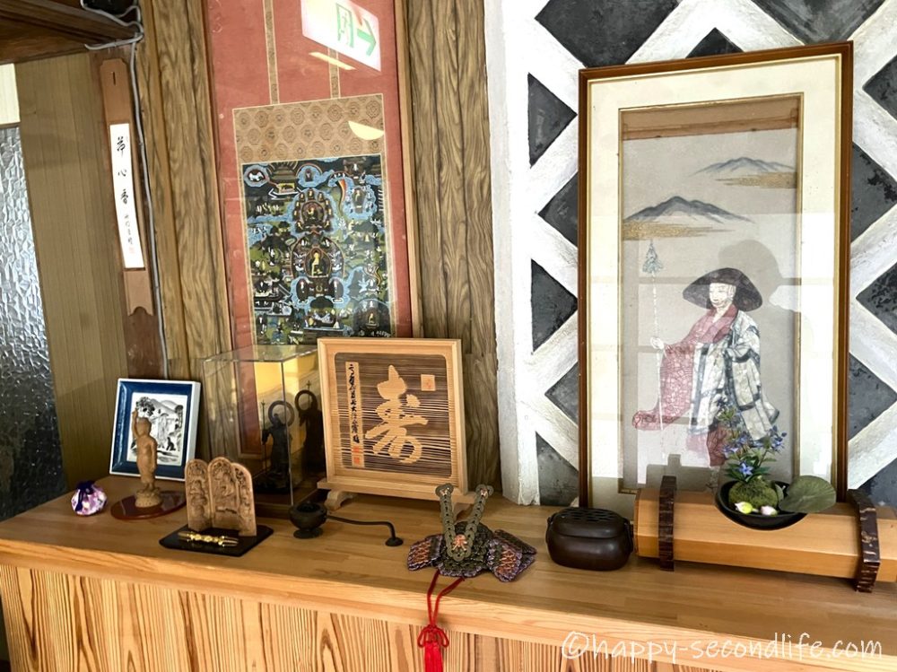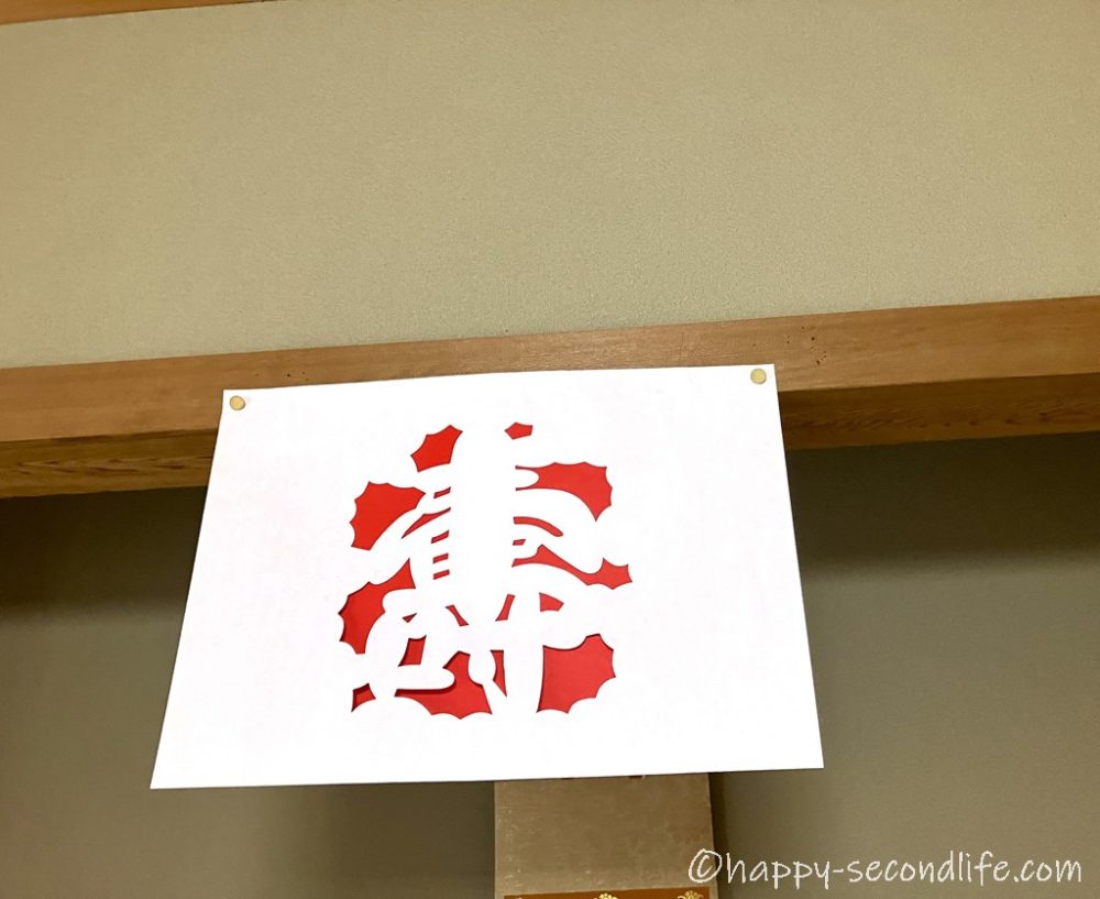 床の間には「吉祥宝来」と呼ばれる、空海さんが中国から持ち帰った技で作られた切り絵が飾られていました。しめ縄の代わりで年中飾るそうです。お店などでも目にしました。