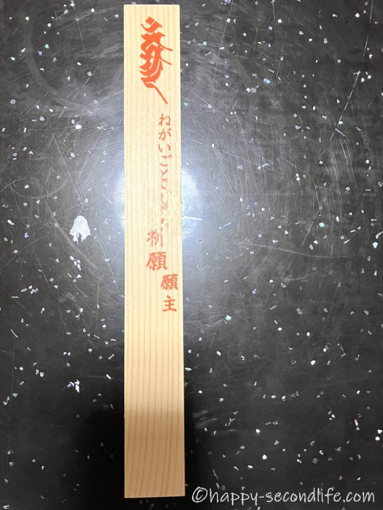 こちらは護摩木。願い事を一つ書いて明朝の護摩行で燃やしてもらいます。