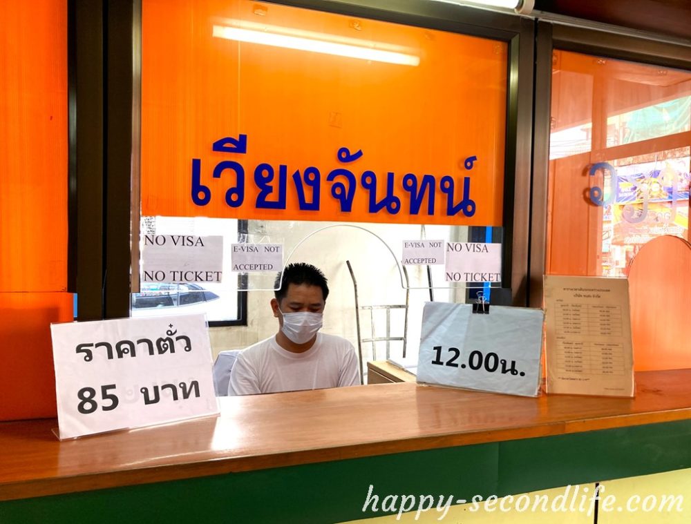 85バーツ、次の出発時間は12時なのがわかる