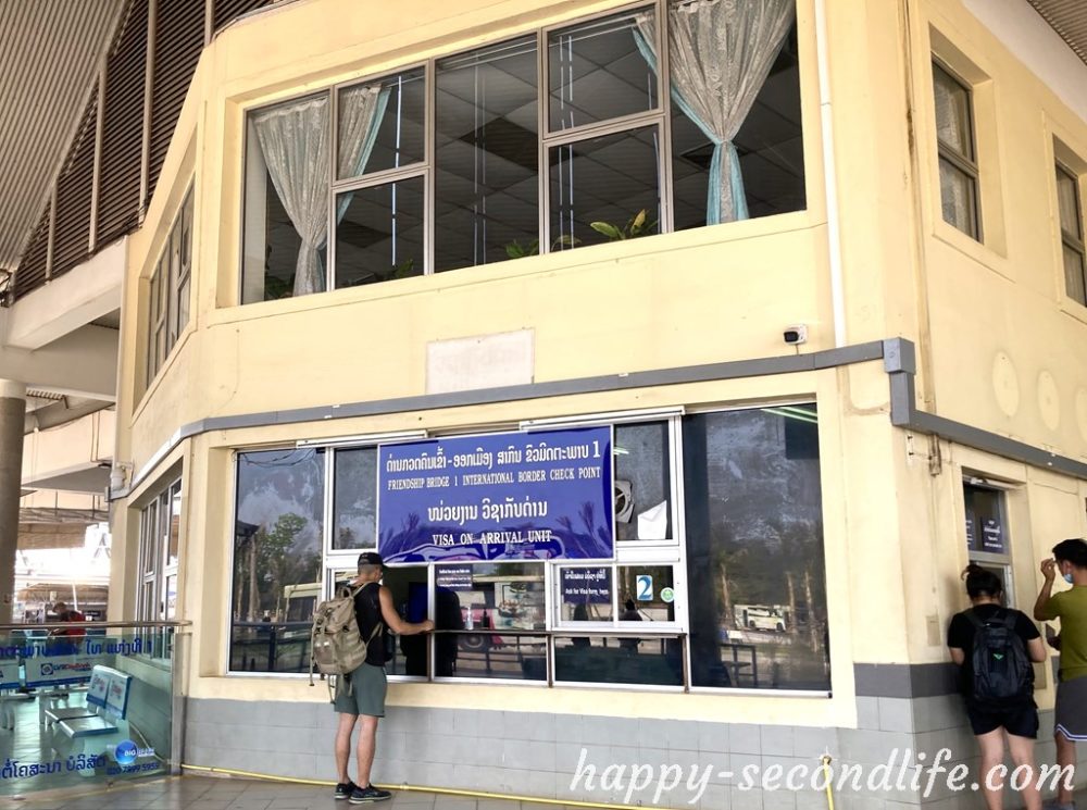 橋を渡ったらラオス側のイミグレーションで一度バスを降り、入国手続きをします。日本のパスポートはほぼノーチェックで通れるようでした。出入国カードをもらい、入国カードに記入してパスポートと一緒に提出。日本人は、15日以内の滞在でパスポートの残存期間が6か月以上あれば、観光、業務ともVISAはいりません。