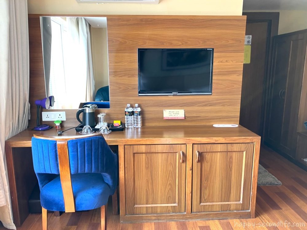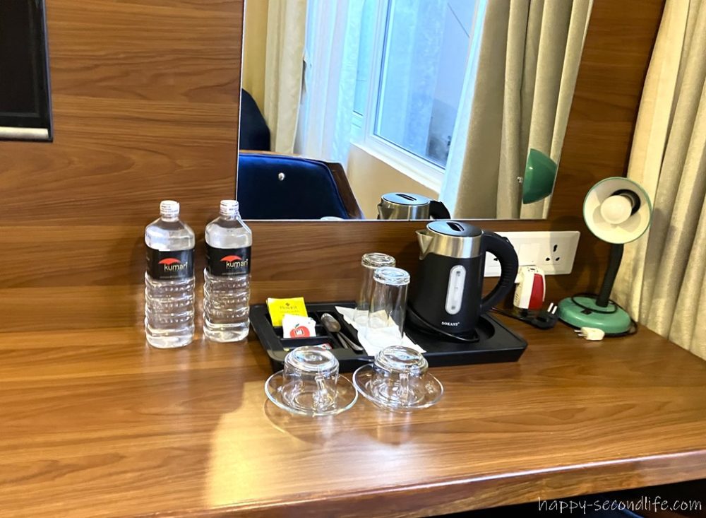 ソファとテーブルもあって過ごしやすい部屋でした。1泊7,000円ぐらい(朝食込)。私はagodaで予約したのですが、オーナーのプラモド氏が言うには「HPから直接予約しれくれたらもっと安かったのにー」とのこと。HPを見てみると確かにその通りでした。