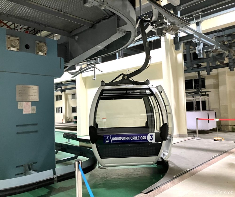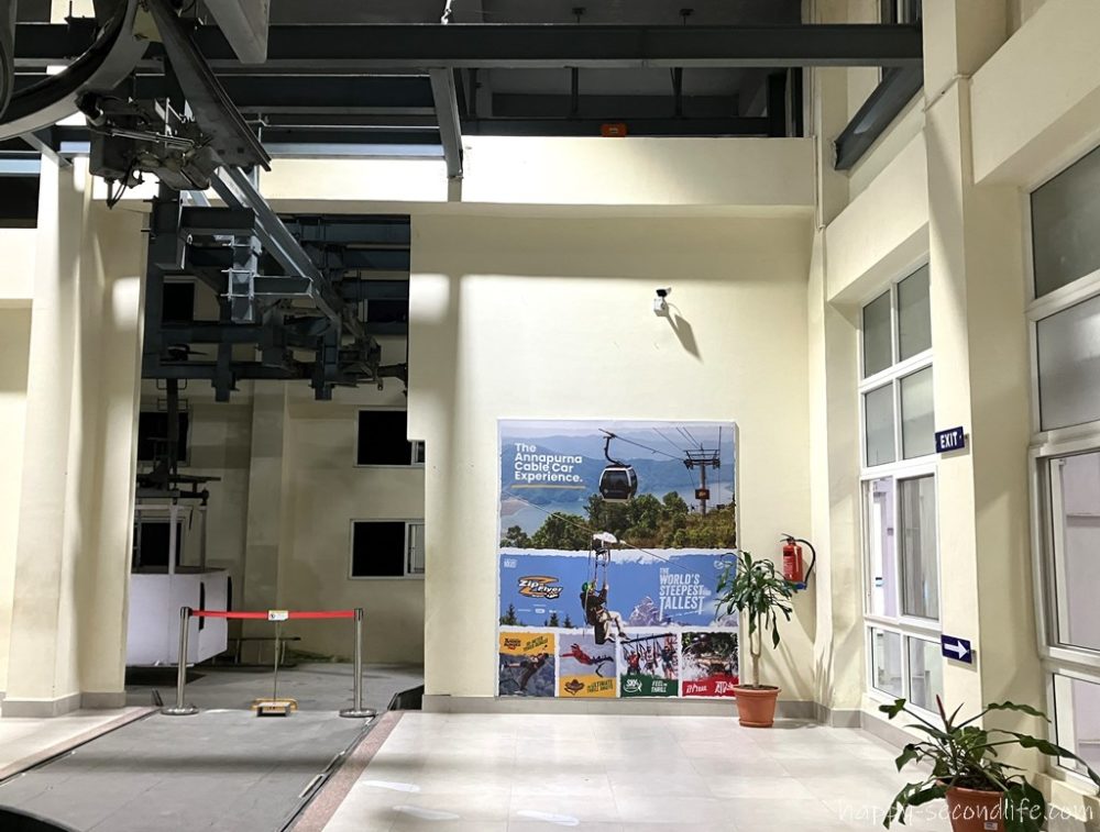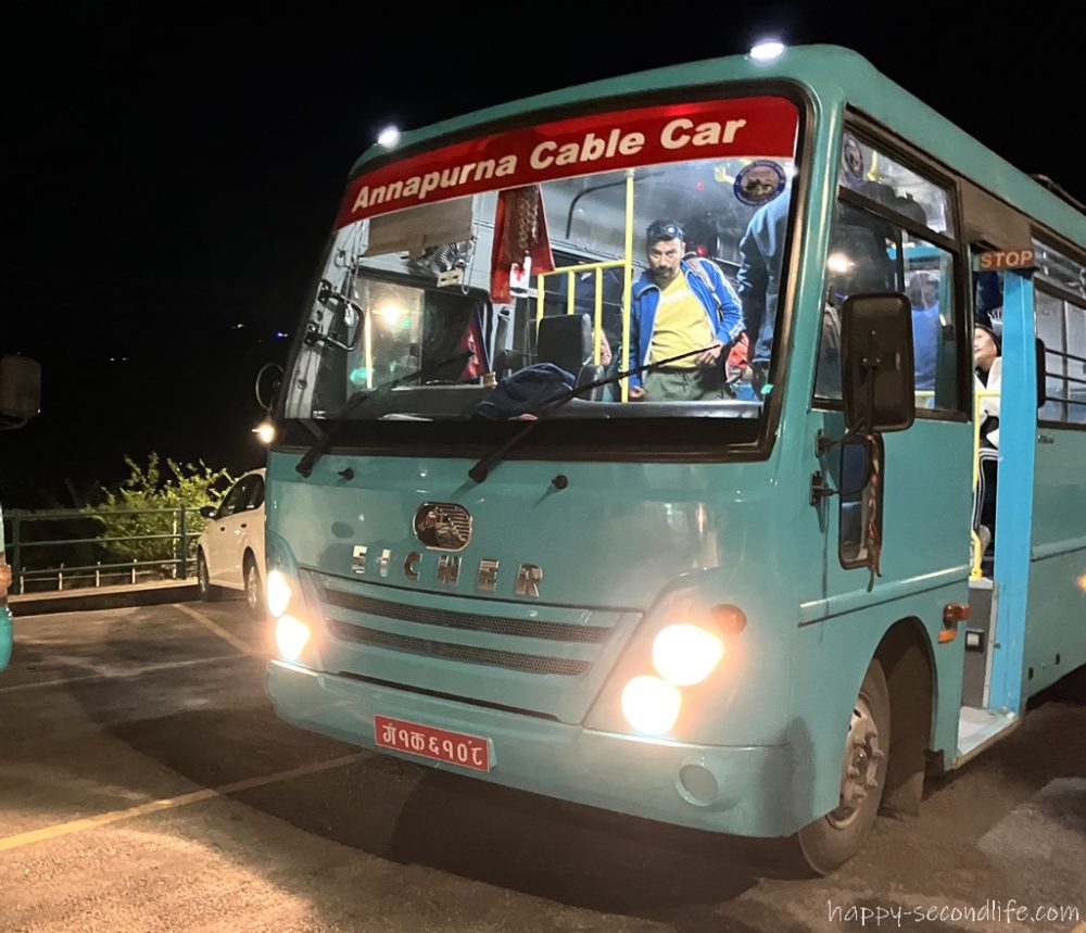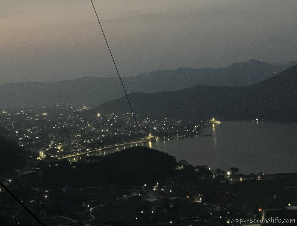 他のお客さんと一緒にケーブルカーに乗り込みます。ドイツ人女性1人、シンガポール人男性1人、インド人カップルがいました。ポカラの町もフェア湖もまだ暗闇の中です。