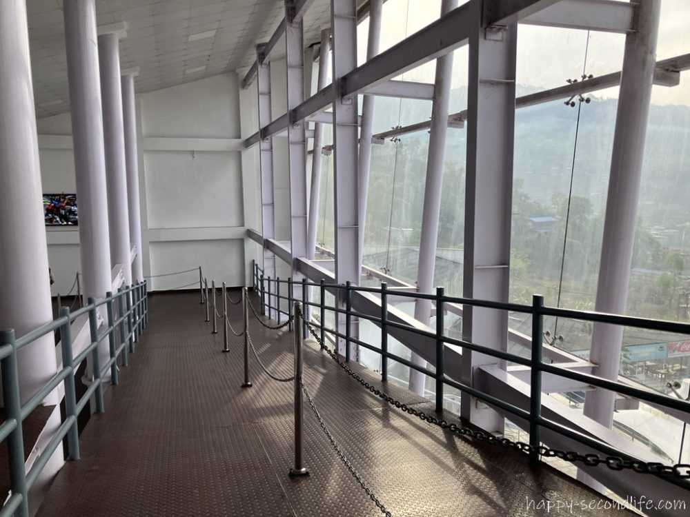 10分ぐらいでサランコットの丘の上に着きました(実際には7分の運行だそうです)。エレベーターでさらにもう1階上ったところから道路を歩きます。みんな同じ方向に行くのでついていけばいいですね。