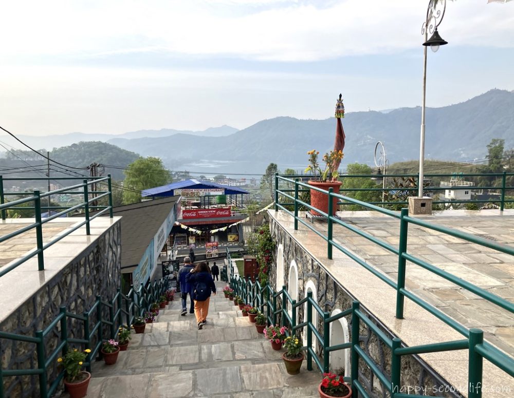 階段を上るとそこがヒマラヤ山脈を眺められる一番高いところです。