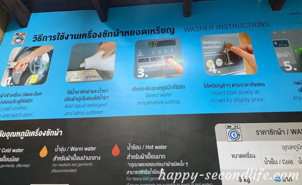 ウドンタニ―では同じ方式のコインランドリーでしたが名前は「Mr.Wash」でした。