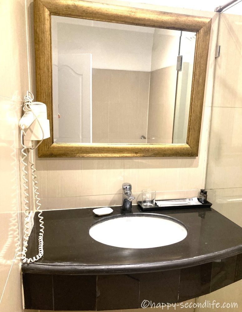 アメニティは石鹸、歯ブラシ、歯磨きペースト、シャンプー、ボディソープぐらいですが、これも近くのコンビニで好みのものを買うので特に不満はありません。パワフルではないけれど一応ドライヤーもありました。