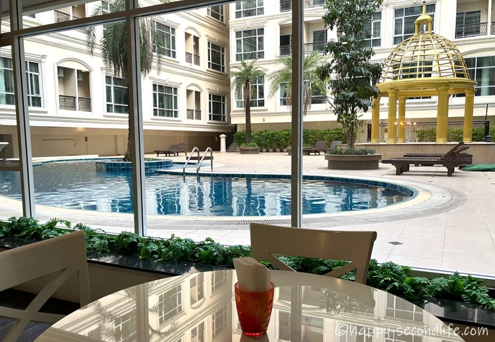 私にとってプールは必須です!暑いバンコクですからあまり予定を詰め込まず、半日はプールサイドで好きな飲み物を飲んでまったり本を読んだりウトウトしたり、時々水に浮かんだりして?過ごします。