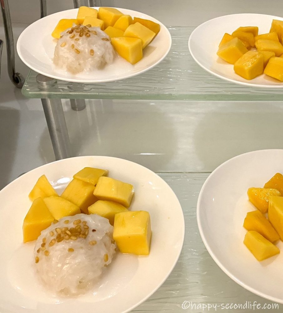 ちょうど3月4月はマンゴ―の季節。「カオニアオマンムアン」がありました。カロリーは高そうだけどこの季節、1度や2度は食べないとね。
