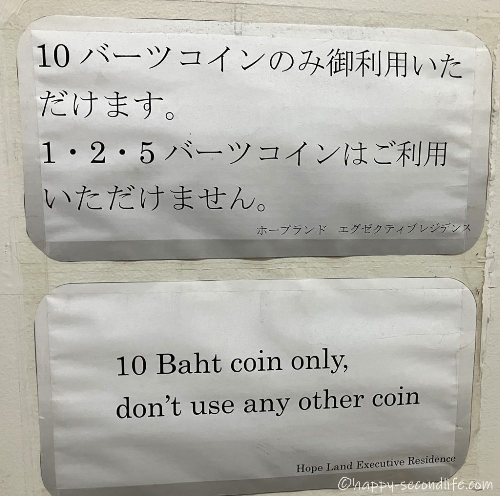 10バーツコインを洗濯で6コ、乾燥で6コ使うので、1階レセプションで両替してもらいました。両替機があればいいのになぁ。