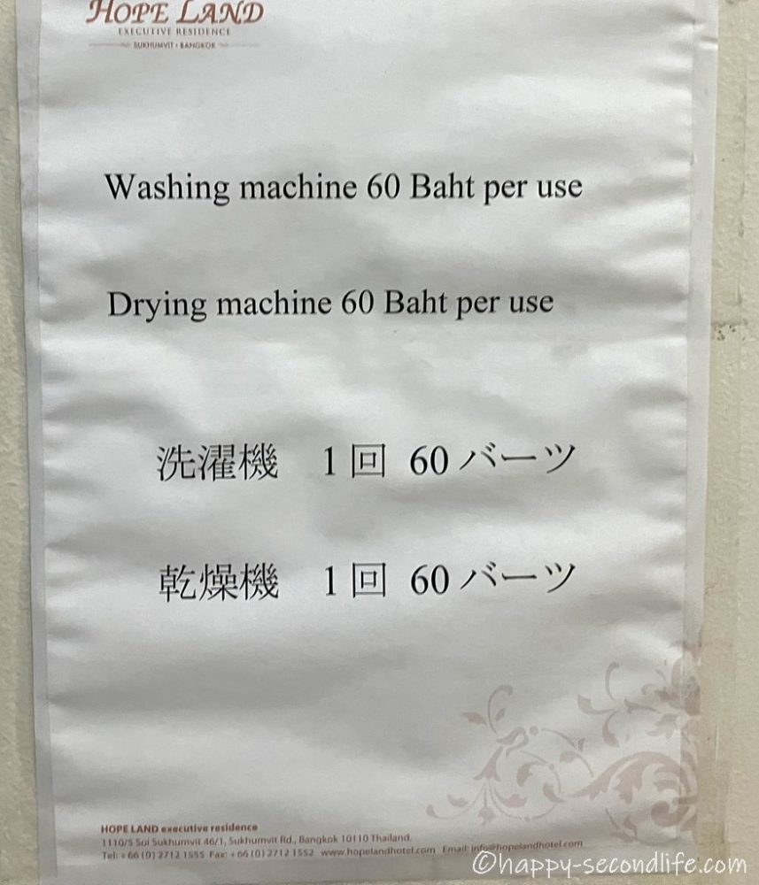 ・・・と、ランドリールームを紹介しておきながらアレですが、私は最初の1回しか使ったことがありません。ホテルの近くにドラム式の新しいコインランドリーがあるので、そちらを利用しています。