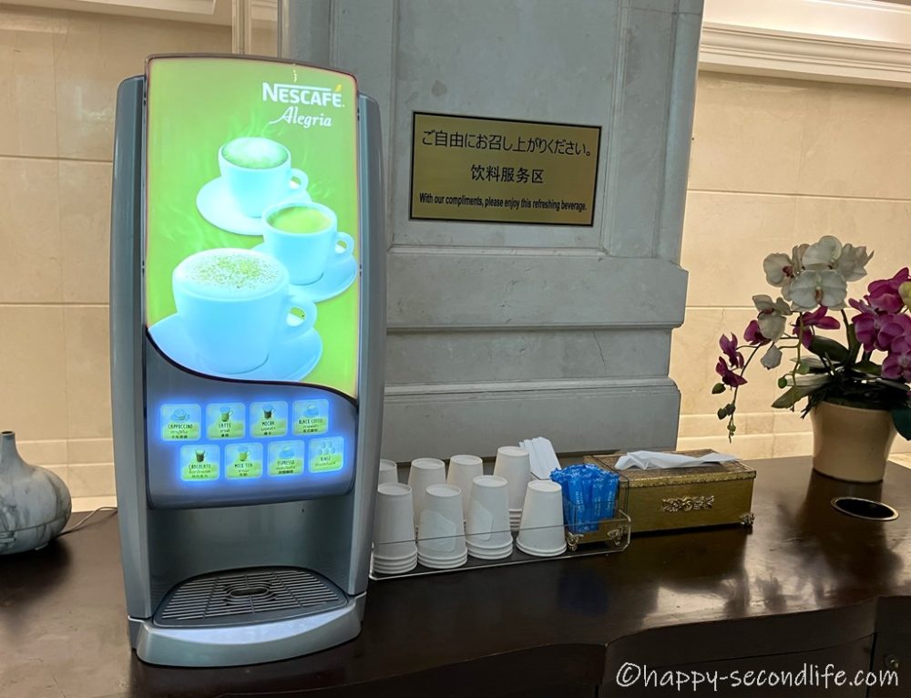 暑い外から帰ったとき、広々して涼しいロビーは本当にありがたい。部屋に上がる前によくソファでひと休みしていました。フリードリンクがあるのも嬉しいですね。
