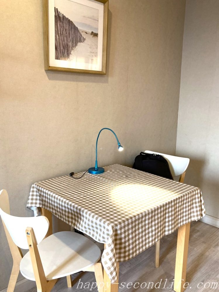 朝ご飯はだいたい下のマックスバリューで買って、小さなダイニングテーブルで食べました。