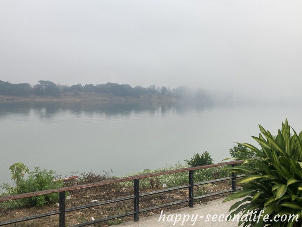 早朝のメコン川は朝もやにけぶって、幻想的な気分を味わえます。