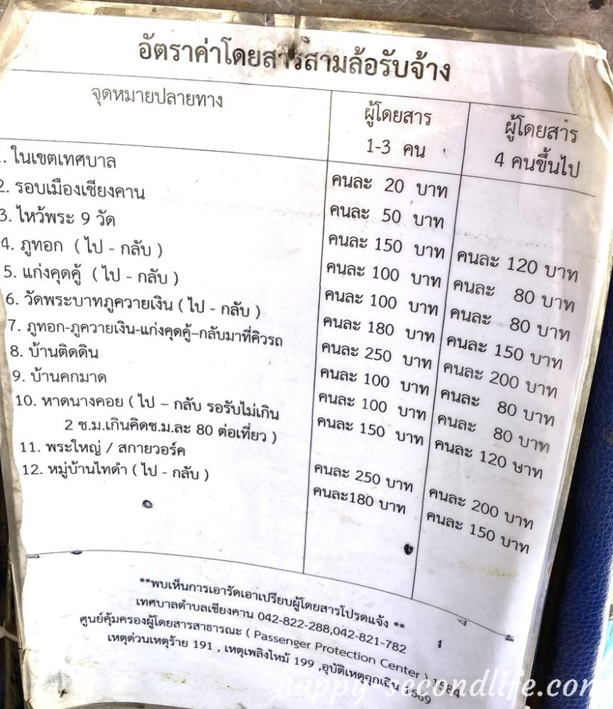 チェンカーンの街中からプートックまでのトゥクトゥクは1-3人往復で100バーツと決まっています。次に紹介するケーンクック―も同じ値段です。トゥクトゥクの運転席に値段表がかけてありましたので、同業者で決めているのでしょう。値段交渉をしなくていいのは気が楽ですね。