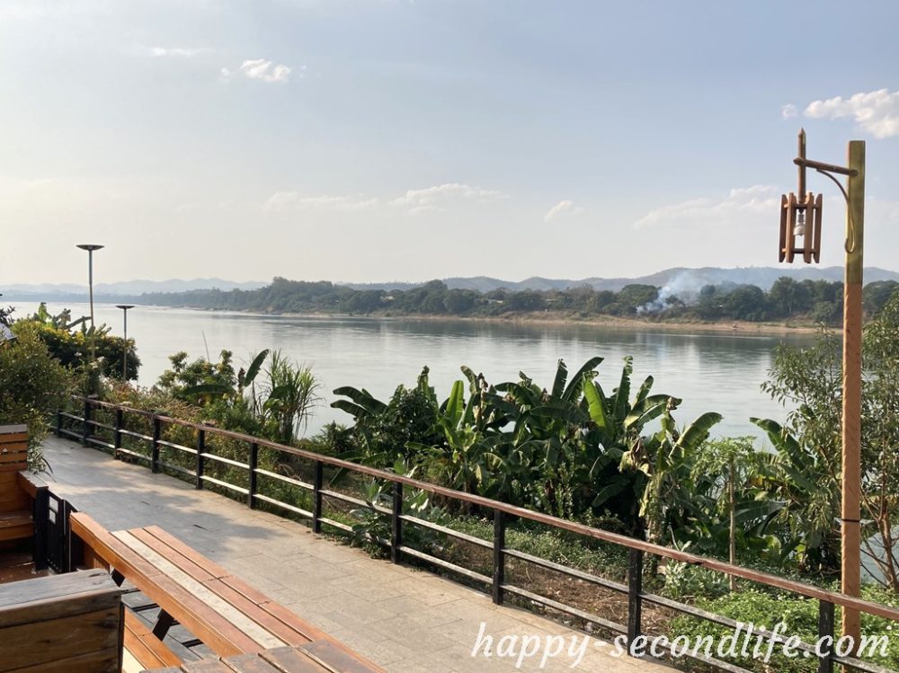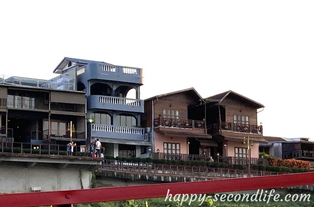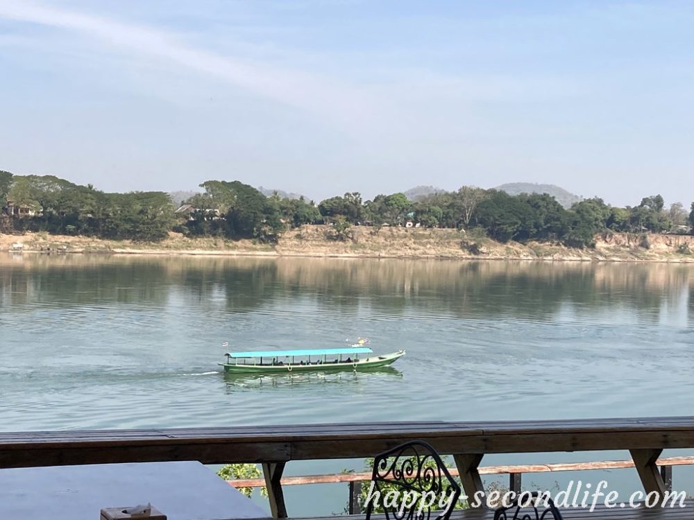 タイ側の川岸にはゲストハウスが並んでいます。対岸はラオスですね。
