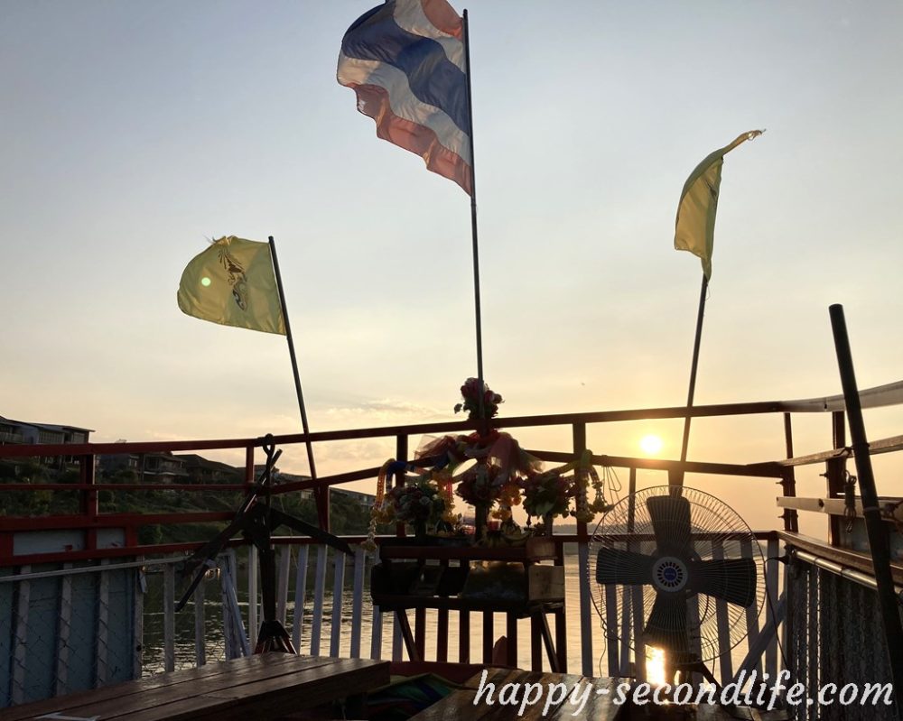 チェンカーンでは、いろんなところからメコン川の日没を眺められますが、ちょっと趣向を変えて船からの眺めもぜひ楽しんでみてください。